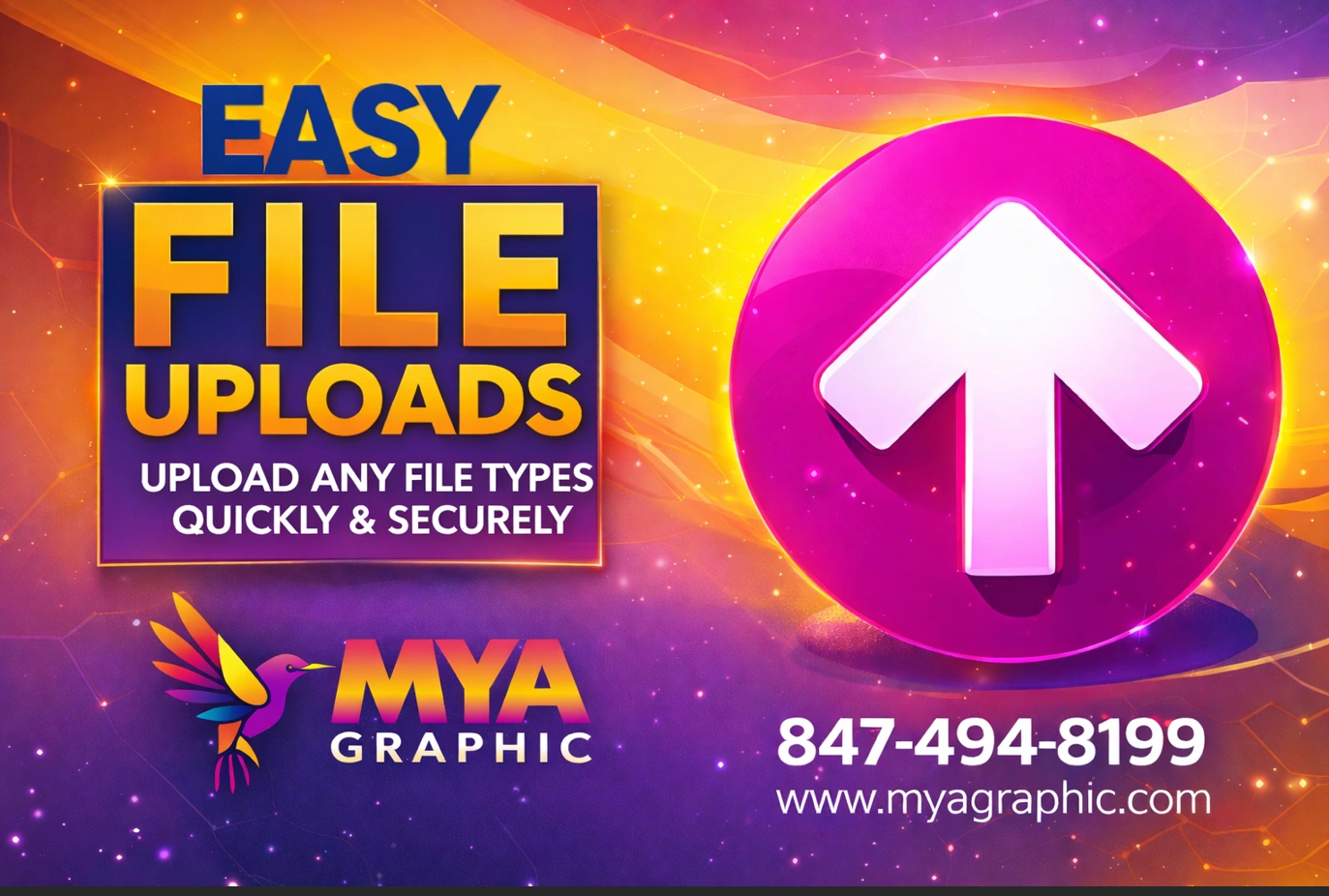 To submit files up to 25 MB please send them attached via email to: info@myagraphic.com